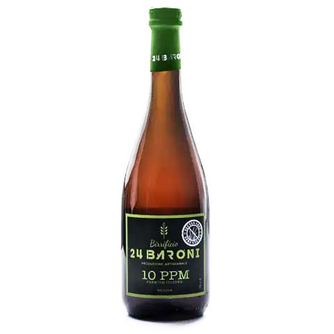 Il glutine è una sostanza presente in molti cereali, tra i quali malto d’orzo e frumento, ma grazie a processi produttivi appositamente elaborati, il Birrificio 24 Baroni è riuscito ad utilizzare cereali tradizionali, giungendo ad abbattere il quantitativo di glutine nelle birre prodotte fino a valori molto bassi, inferiori ai 10 ppm. Premium pilsner, fresca e leggera al palato, il finale è pulito e luppolato, lievemente amaro con note fruttate in evidenza. Dal colore dorato, brillante e limpido, dalla schiuma bianca e molto densa. All’olfatto è subito evidente l’abbondante luppolatura, profumo intenso floreale, note di cereale ed erbaceo. Gusto particolarmente secco che nel finale regala la freschezza dei sentori di malto e luppolo. Si distingue per il suo amaro caratterizzato da una luppolatura decisa e dall’abbondante utilizzo delle migliori varietà di luppolo.