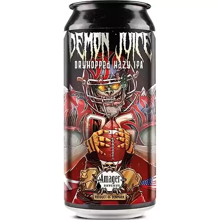 Demon Juice is a beer born out of friendship across borders. Back in 2016 Jacqueline Weycker, out of Green Bay, Wisconsin, was an exchange student in Copenhagen, living with a host family at Amager. Jacqueline – or Jackie – came from a brewing background as back in 1996, her dad, Brent had founded one of the earliest craft breweries back home in Green Bay: Titletown Brewing Co, located in an old train depot registered in the National Register of Historic Places. Knowing her interest in beer and brewing, her Danish host family took her to Amager Bryghus where she immediately became a friend and volunteer pouring beer at a couple of Amager events with the skill and professionalism that only an upbringing in the beer world can give you! In the spring of 2019 Jackie messaged us, telling that she was gonna be back in Europe, this time bringing her whole family on a holiday. We quickly arranged a stop-over in Denmark, this time to make an official collaboration beer between Titletown and Amager. And so it was that on May 13th no less than 5 representatives of the Weycker family, led by Jackie and her dad Brent, came to brew Demon Juice over a breakfast loaded with plenty of danishes. As Amager, like Green Bay, is a proud location for American football, we named the beer with a friendly nod at our very own local football heroes, the Amager Demons.